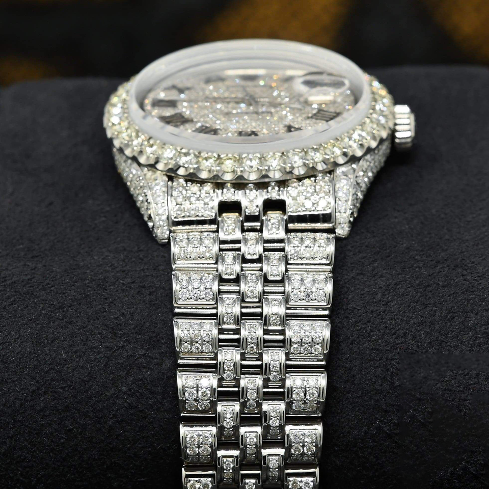 Attractive Custom Luxury Band Wrist Watch Chronograph Moissanite Round Cut Diamond Hip Hop Stainless Steel Watch for Men