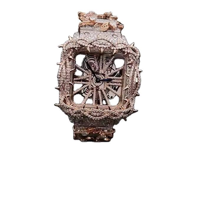 Attractive Custom Luxury Wrist Moissanite Watch Round Cut Diamond Hip Hop Thorns Stainless Steel Skeleton Watch Men From India