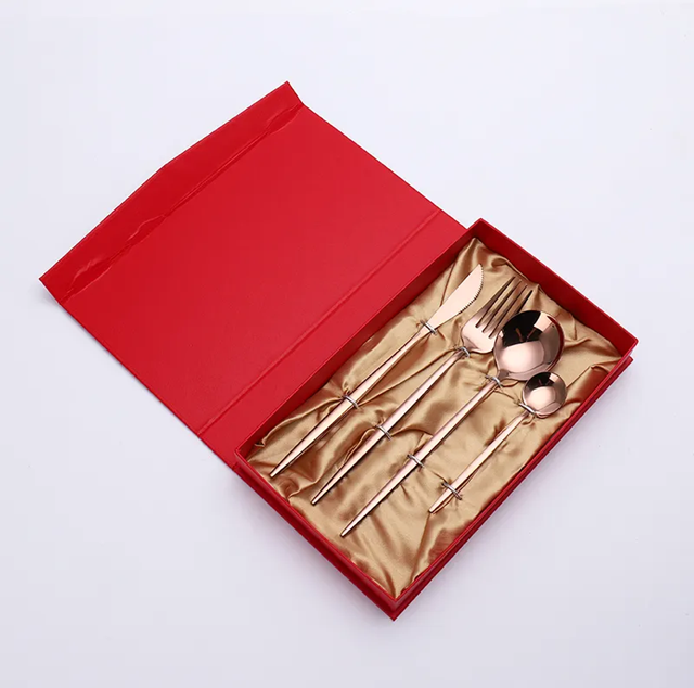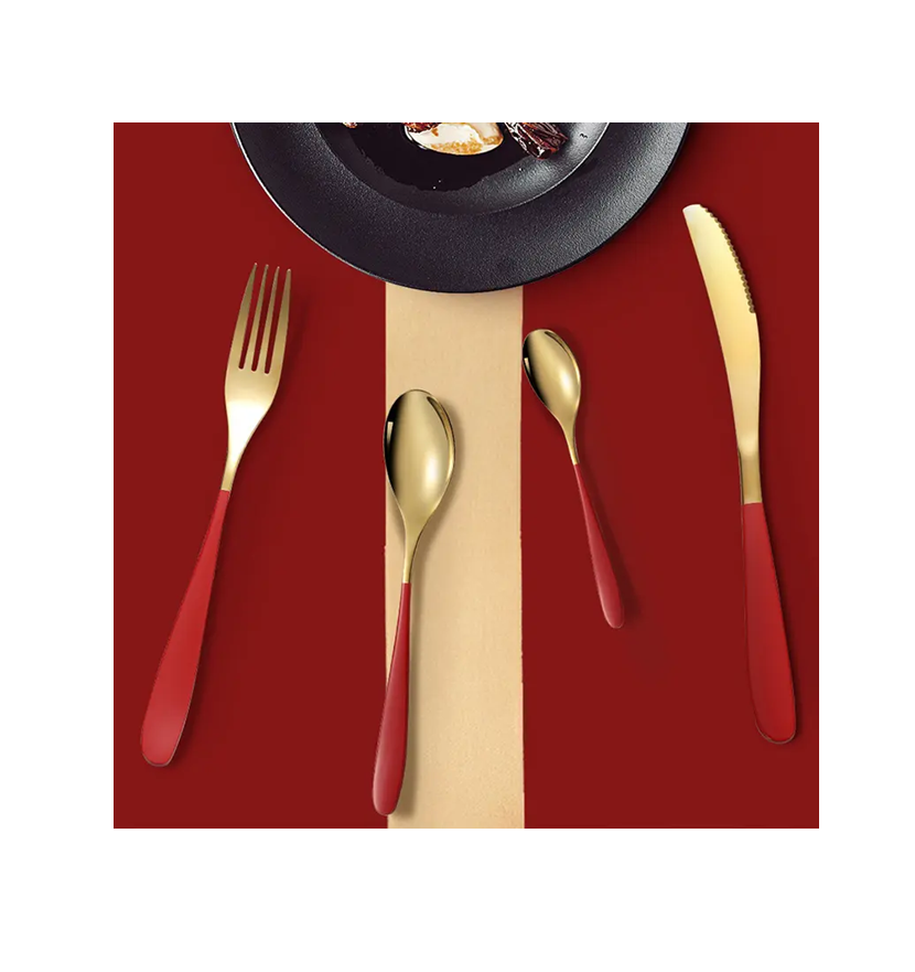Attractive Design Brass Gold Color Cutlery Set Of Four Pieces Spoon And Fork mirrored steel High Quality Flatware Cutlery Set