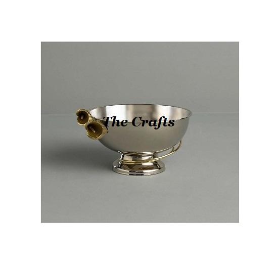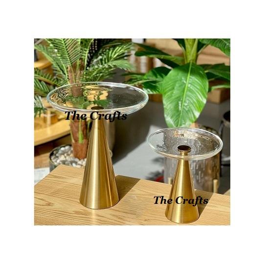 Attractive Design Glass Serving Bowl With Gold Metal Stand Home And Hotelware Chocolate Bowl Set Of Two Different Sizes