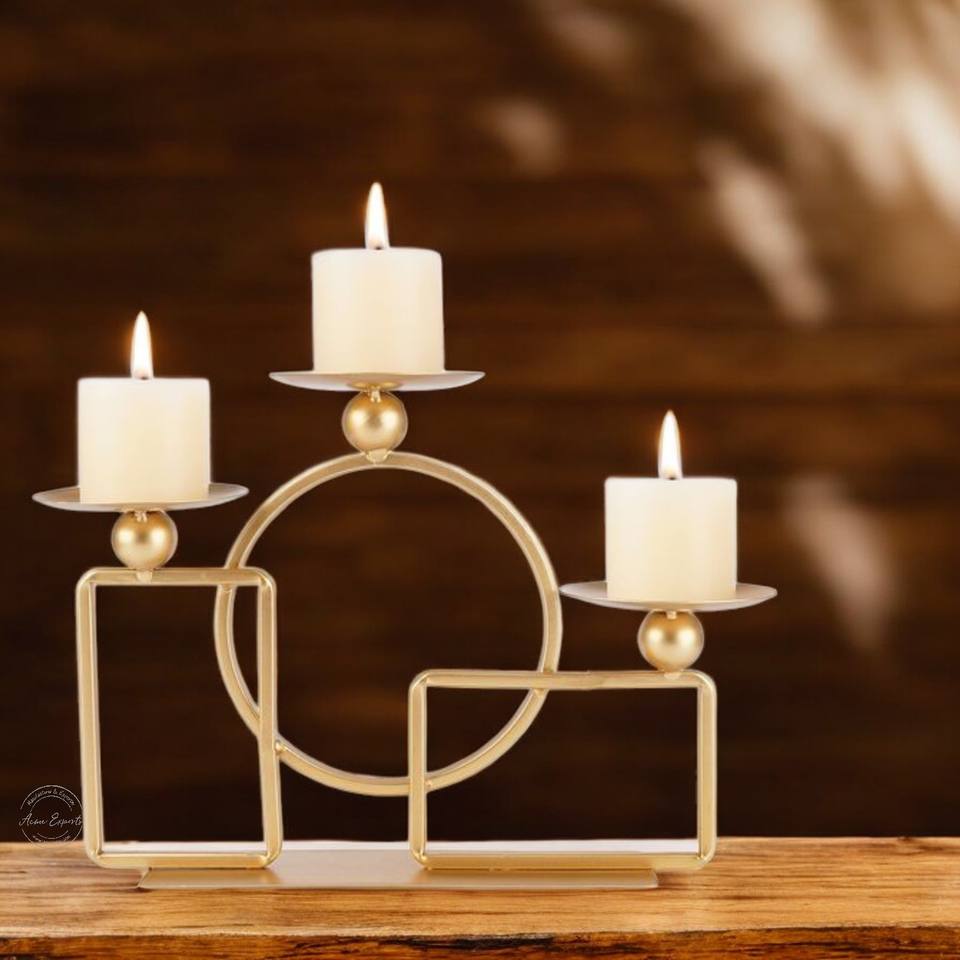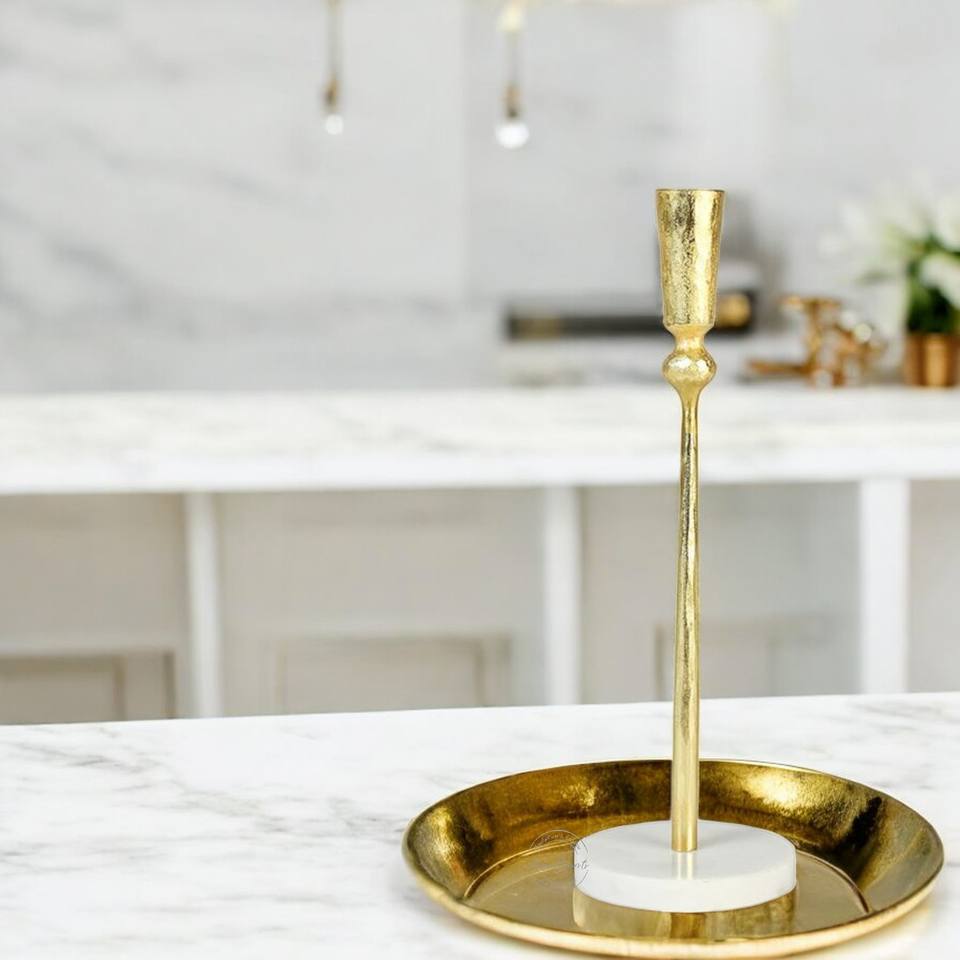 Attractive Design Gold Aluminium Candle Stand with Round Marble Base Perfect for Events and Garden Decoration