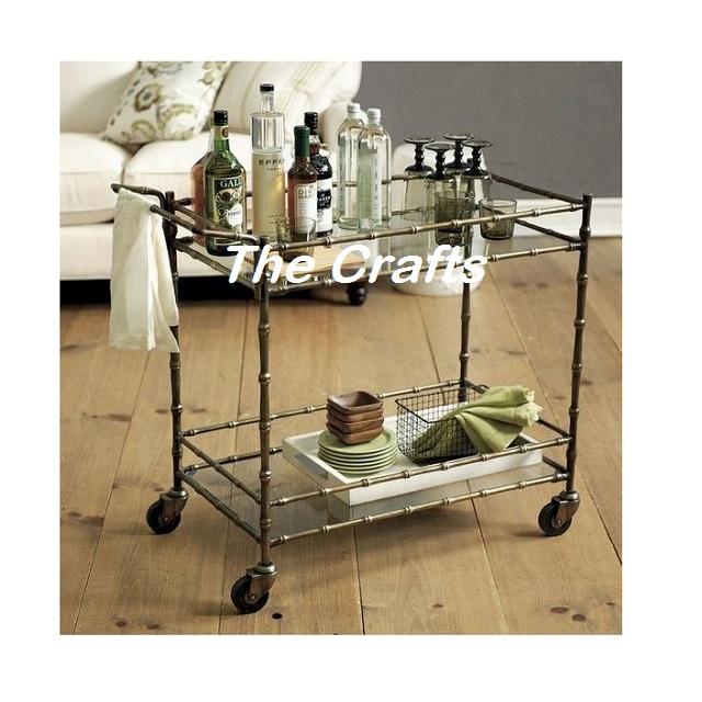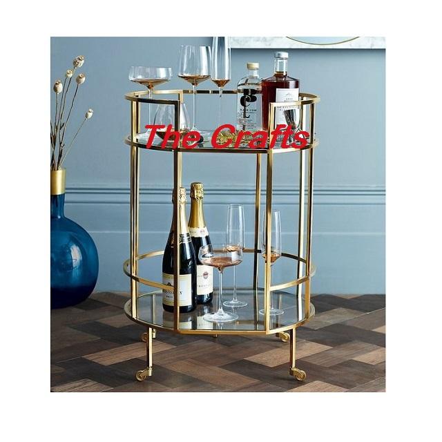 Finest Quality Oval Shape Serving Trolley In Iron And Glass Serving Food Snacks Trolley For Restaurant Use