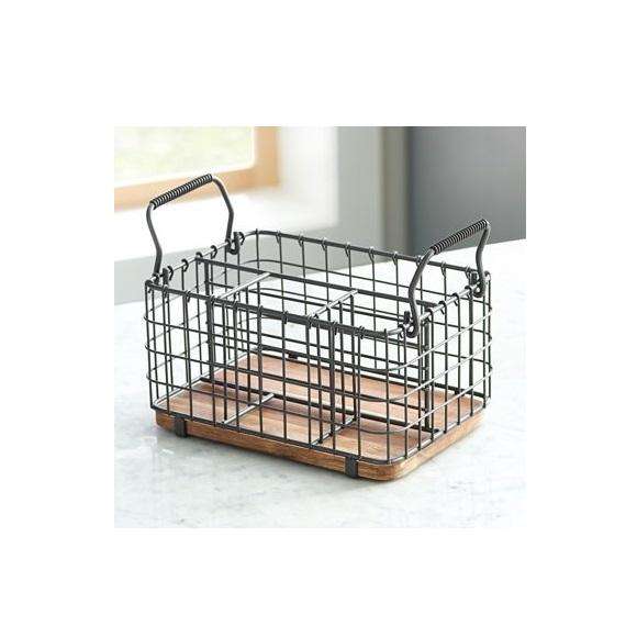 Attractive Design & Look Four Section Iron Wire Bottom Wood Cutlery Holder Decorative Handmade Storage Holder at Best Price