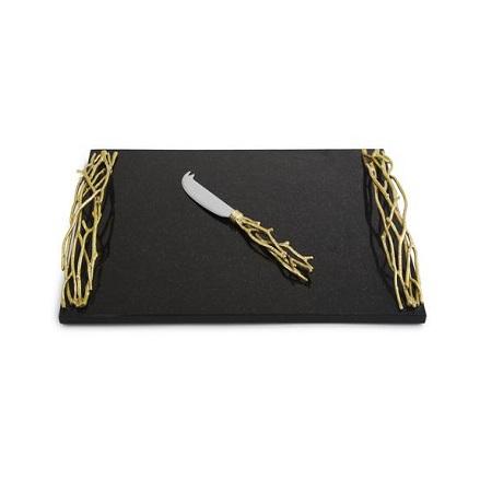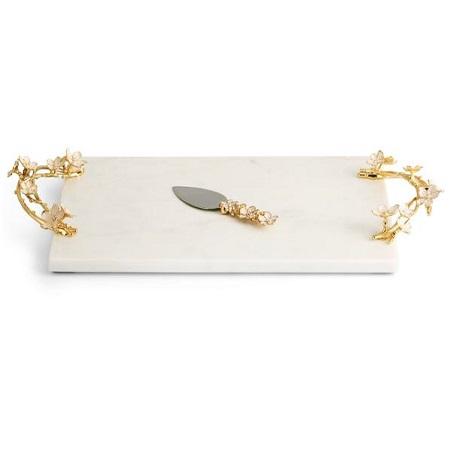 Attractive Design Marble Cheese Board With Gold Handles And Knife For Kitchenware Cutting Cheese Board