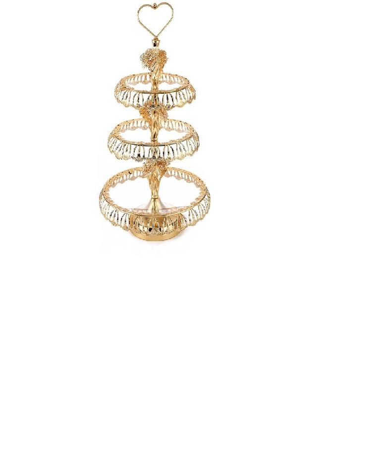 Attractive Design Metal & Glass Cake Stand Shiny Golden Finishing Metal Cake Stand With Round Glass Top 3 Tier Metal Cake Stand