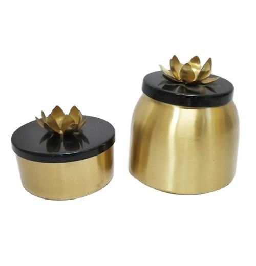 Attractive Golden Metal Votive Holder with Black Lid for Home and Wedding Tabletop Candle Decoration