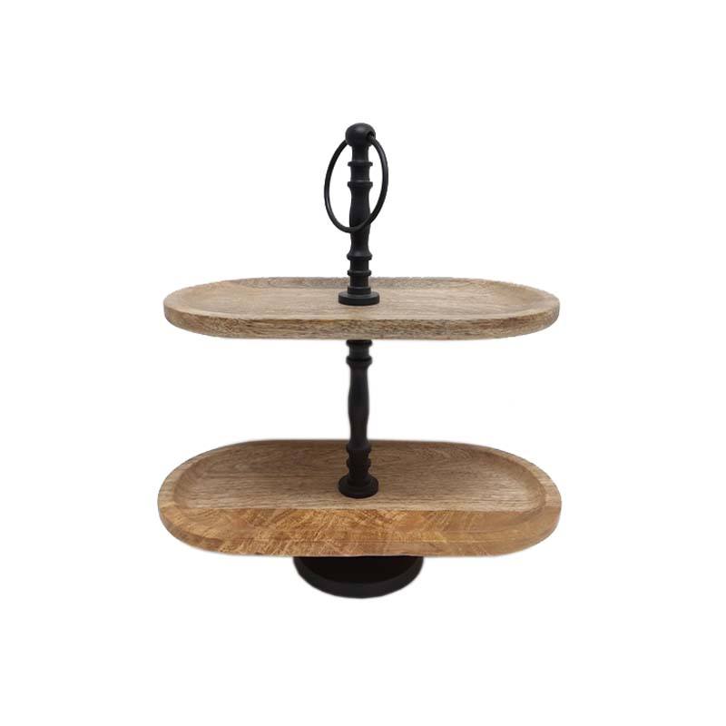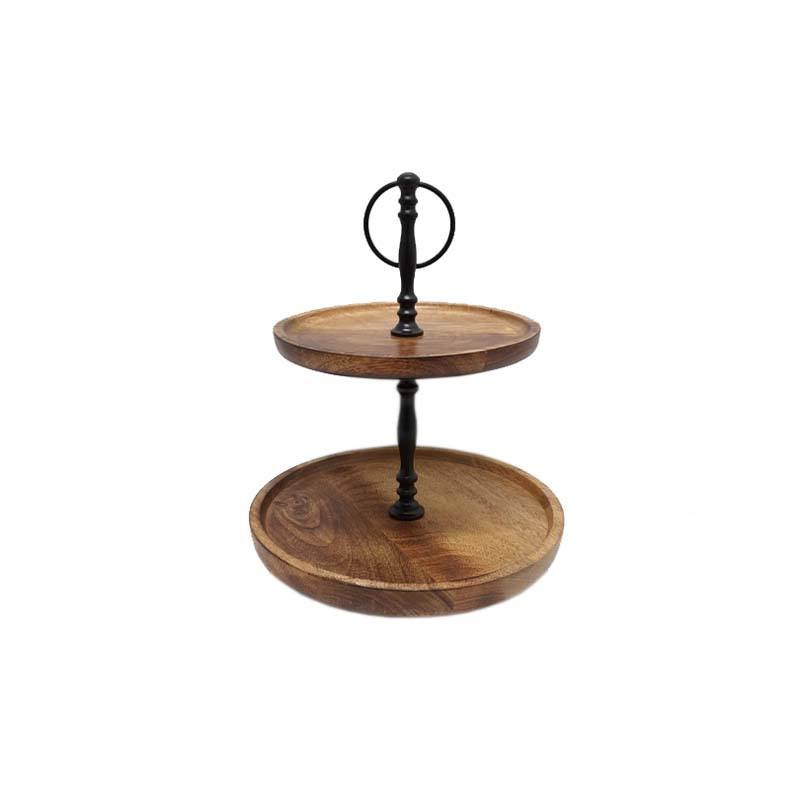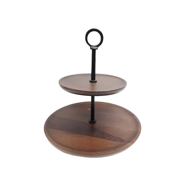Attractive Design Metal Iron 2 Tier Cake Stand Natural Wood & Silver Stand Serving Tray Tabletop for Restaurants