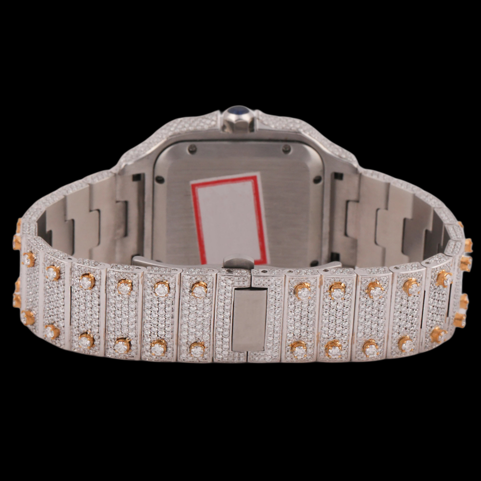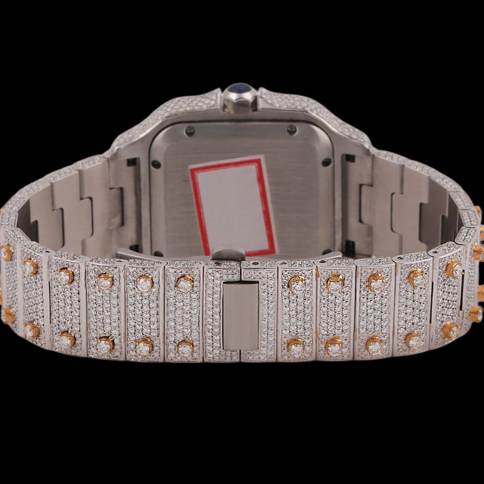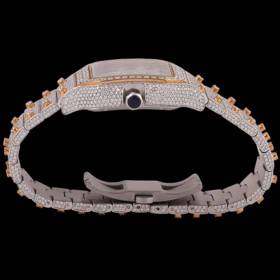 Attractive Design Round Case Glass Hidden Clasp Full Moissanite Diamond Two Tone Fashion Quartz Movement Party Wear Watch