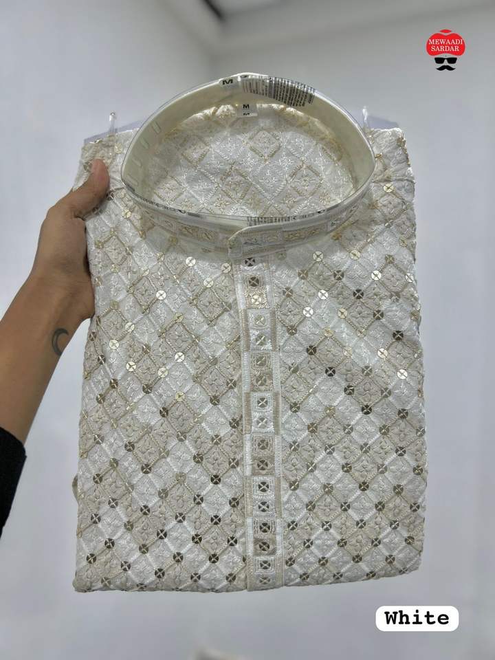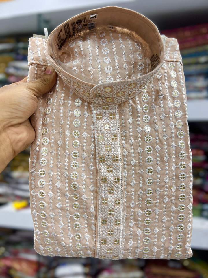 Product Name:Premium Rayon With Embroidery and Sequins Mans Kurtra Pyjama