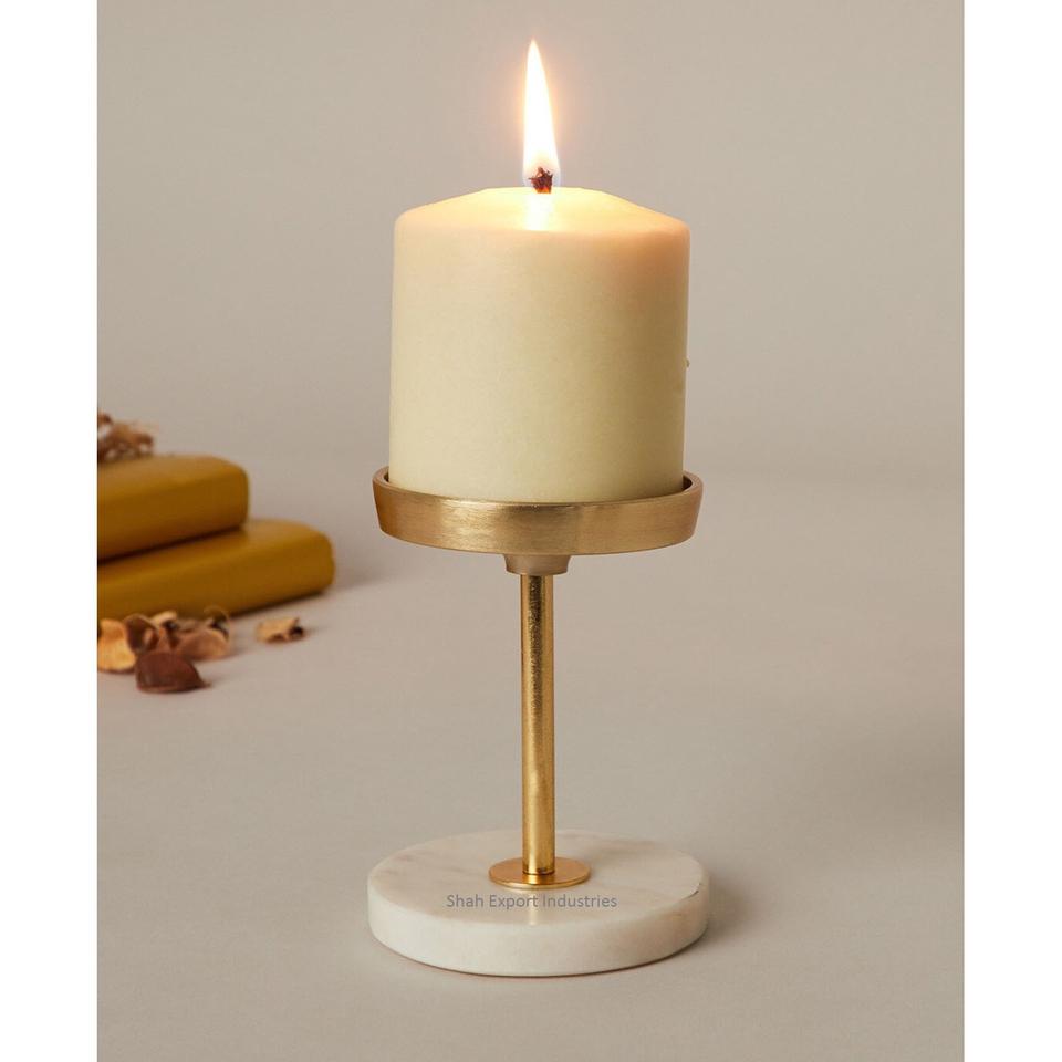 Attractive Gold Metal Pillar Candle Holder With Round Marble Base for Wedding Party Event Table Decor Candle Pillars