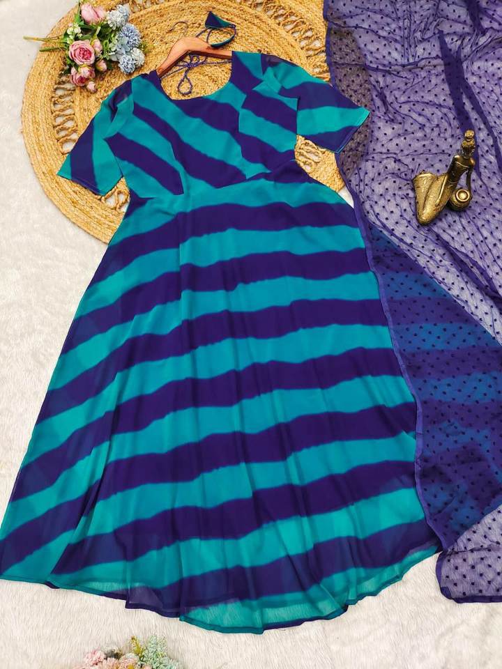 Attractive Hand Block Print Georgette Silk Multi Color Embroidery Work Long Flair Gown Women's Festival Season Semi-Stitched