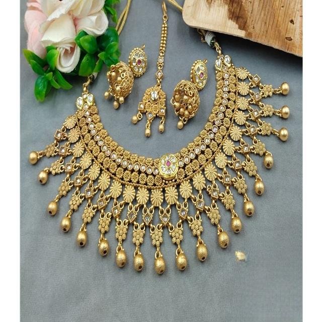 Attractive High Quality Mossanite Pure Gold Look Kundan Choker Earrings With Tikka Set for Women Designer Jewelry for Wedding