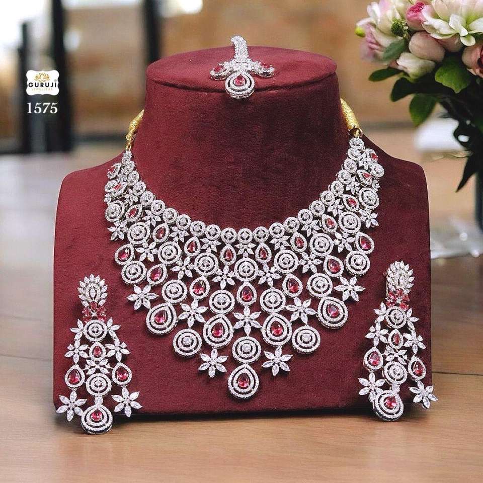 Attractive High Quality Silver Plated Stone Look Design Stylish Necklace With Earrings And Tikka Set For Traditional Wedding