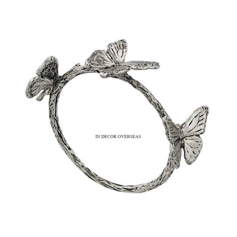 Attractive Look Best Quality Aluminum Casted Silver Shiny Polished Butterflies Designer Luxury Table Decoration Napkin Rings