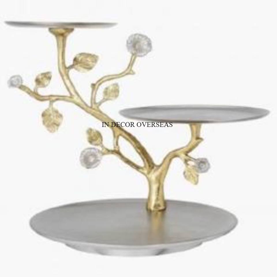 Attractive Look Silver Color Shiny Polished And Gold Plated Floral Designer High Standard Quality Metal 3 Tier Cake Stand Supply
