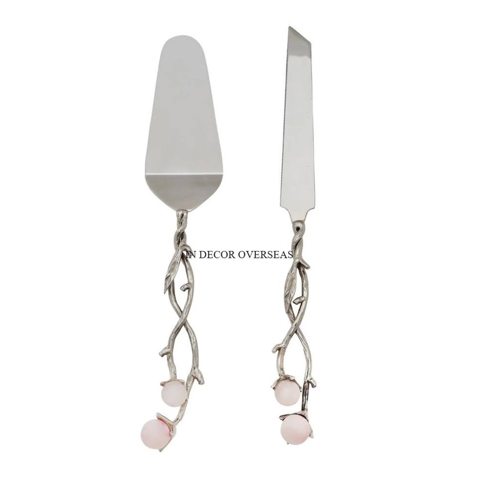 Attractive Look Silver Shiny Polished Heavy Duty Metal Unique Designer Folk And Spoon Cake Tools From Indian Manufacturer