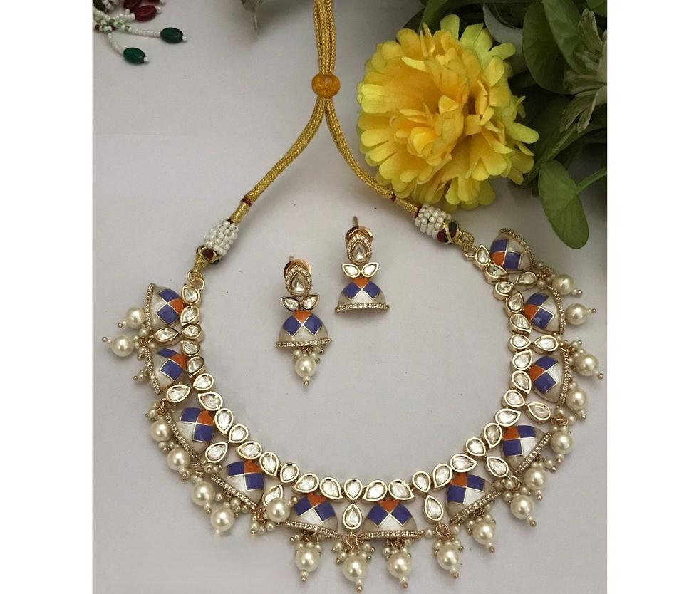 Attractive Premium Quality Gold Plated Kundan Stones Necklace Set With Earrings for Wedding Wear Collection For Women