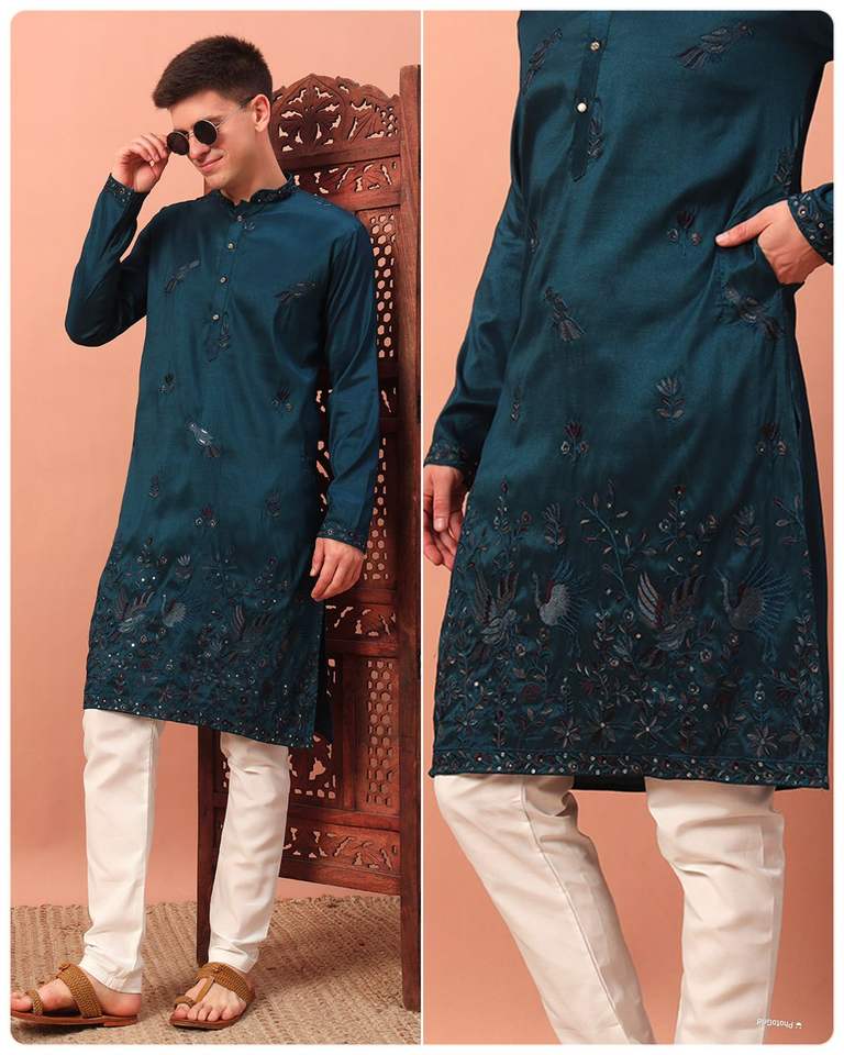 Product Name:Attractive Premium Silk With Embroidery Sequins Work Kurta Pant