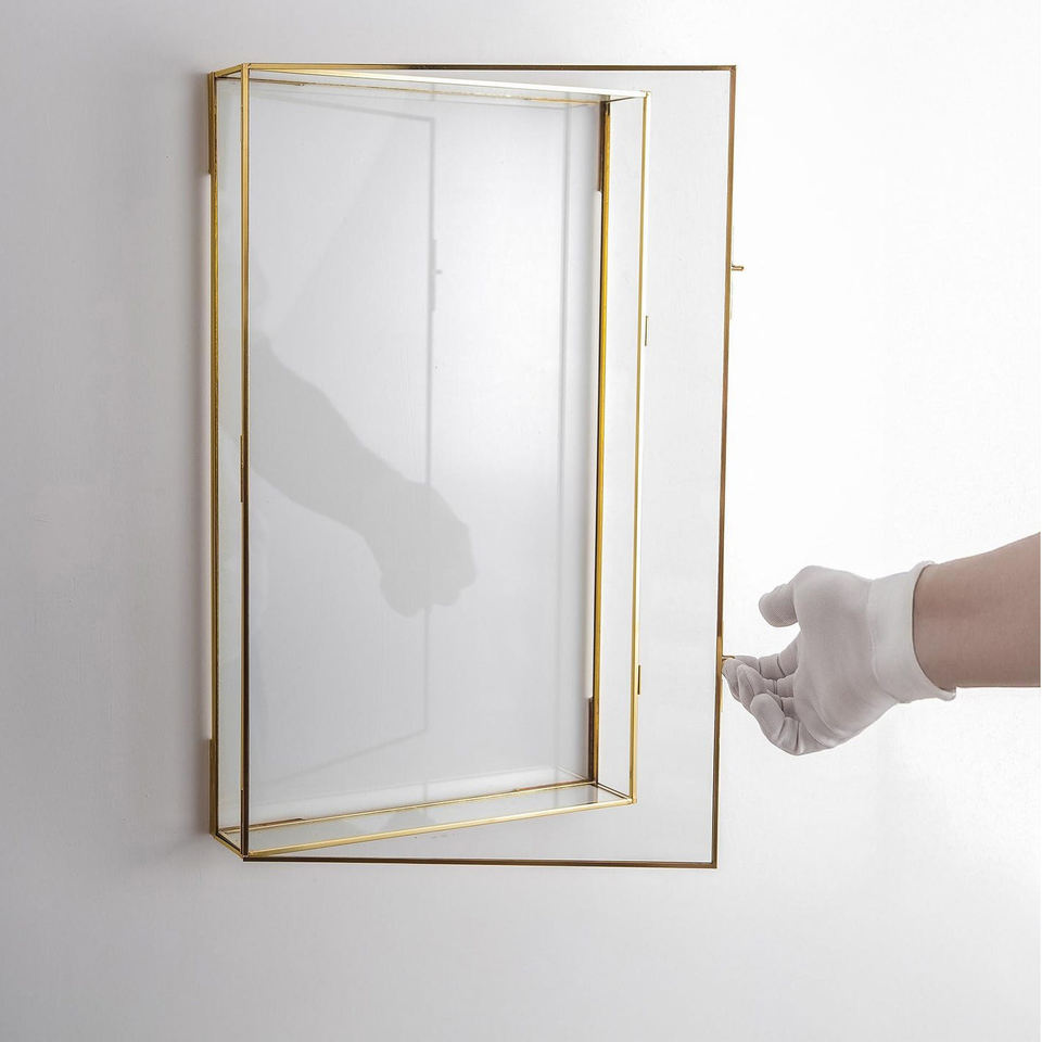 Attractive Product Clear Glass Gold Finished Heavy Brass Frame Wall Mount Storage Cabinet Display Showcase Jewelry Organized