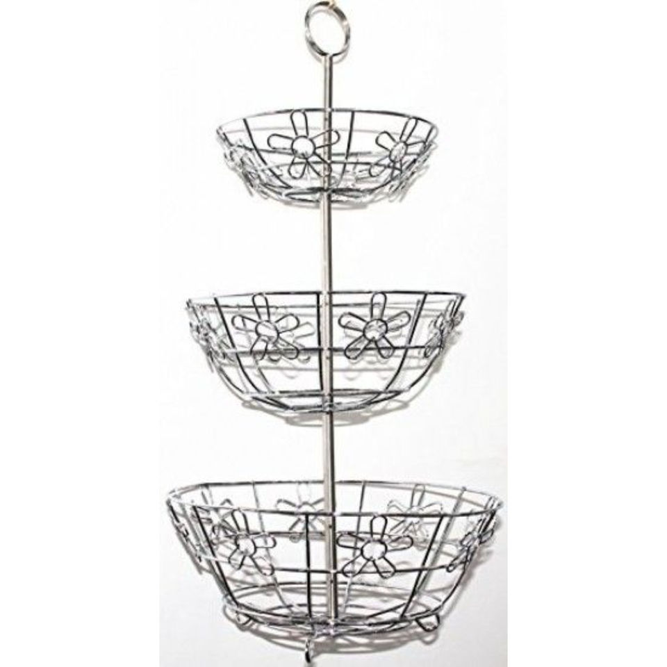 Attractive Geometric Iron Wire Eco-Friendly Modern 2-Tier Fruit & Vegetable Storage Basket with Handles for Tabletop Use