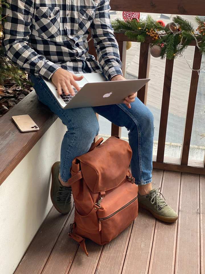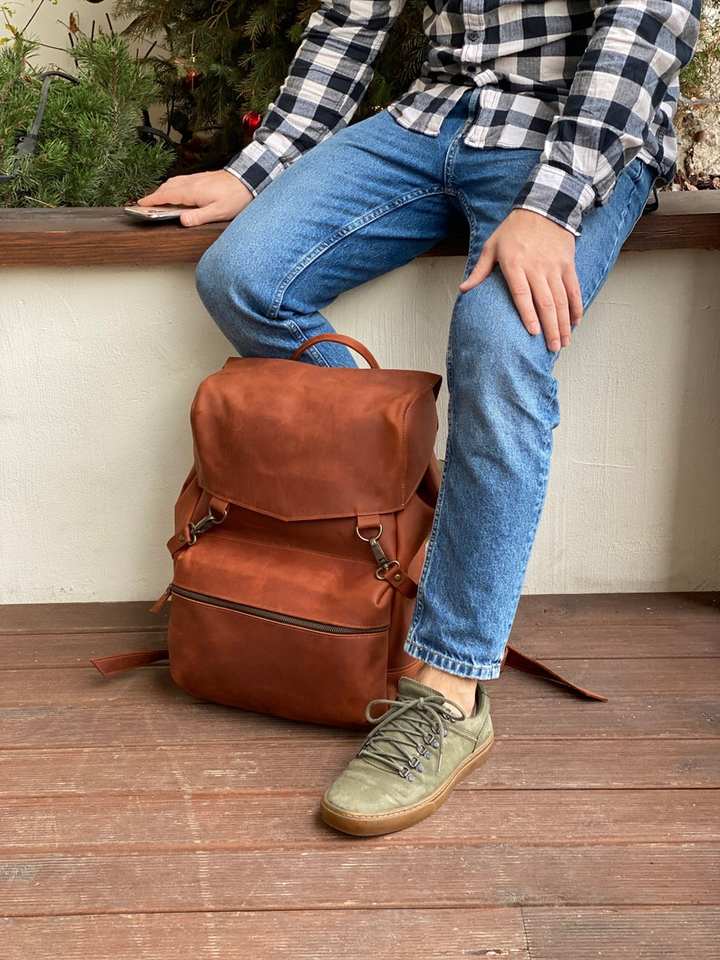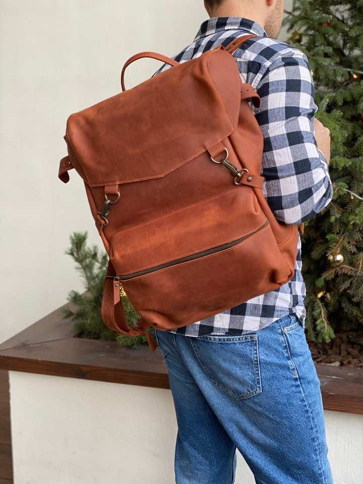 Fashion Style Genuine Leather Backpack for School Students Large Capacity with Anti-Theft Feature Zipper Closure-LBP-0135