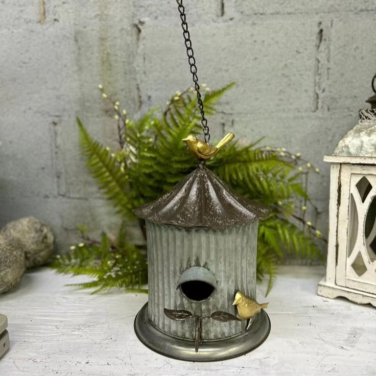Attractive galvanized metal bird house perfect for outdoor garden decoration accessory