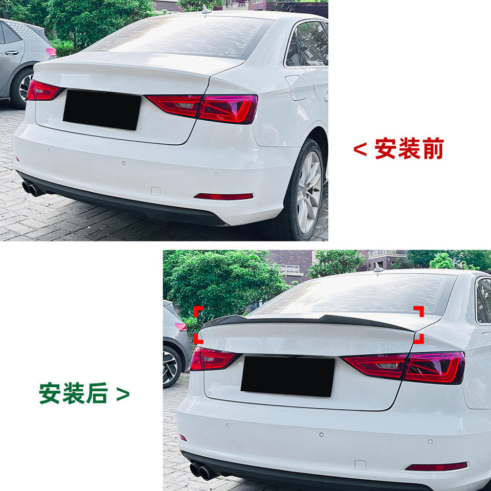 Audi A3 8V Rear Spoiler Blade Style M4 Piano Black Carbon Fiber Texture ABS Trunk Wing 2014-2020 Sedan