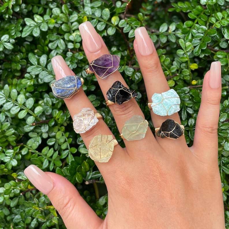 Keyword:Aurawrap Rainbow Stone Wire Wrapped Ring Color Flow Bold Energy Raw