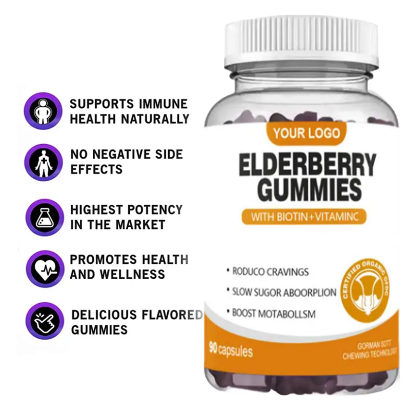 Ausreson Black Elderberry Vitamin C Gummy Candy Private Label Food Supplement Organic Bulk Immune Support Halal Certified