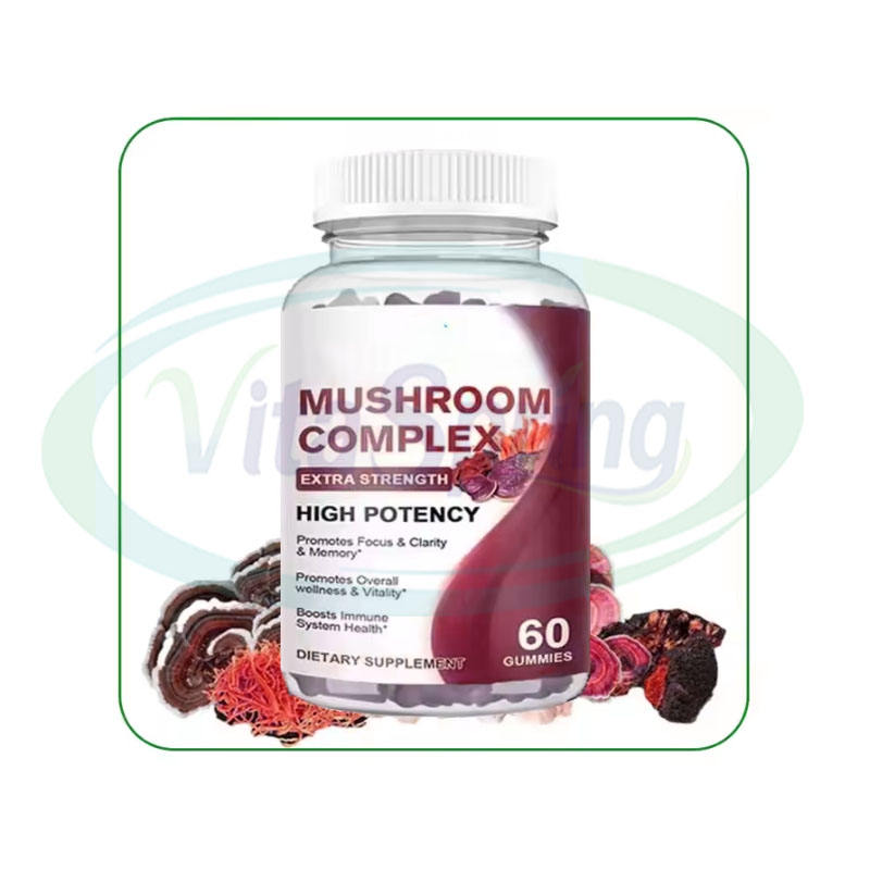 For OEM Adult Mushroom Gummies Energy Brain Support Organic Vegan Mushroom Extract Complex Vitamins 2g Daily Dose