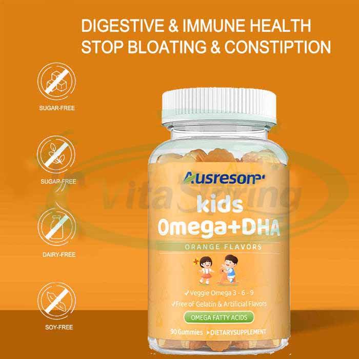 Ausreson OEM Vegan Dha Kids Vitamins Health Supplement Halal omega 3 6 9 Fish Oil Gummy Candy omega 3 Gummies