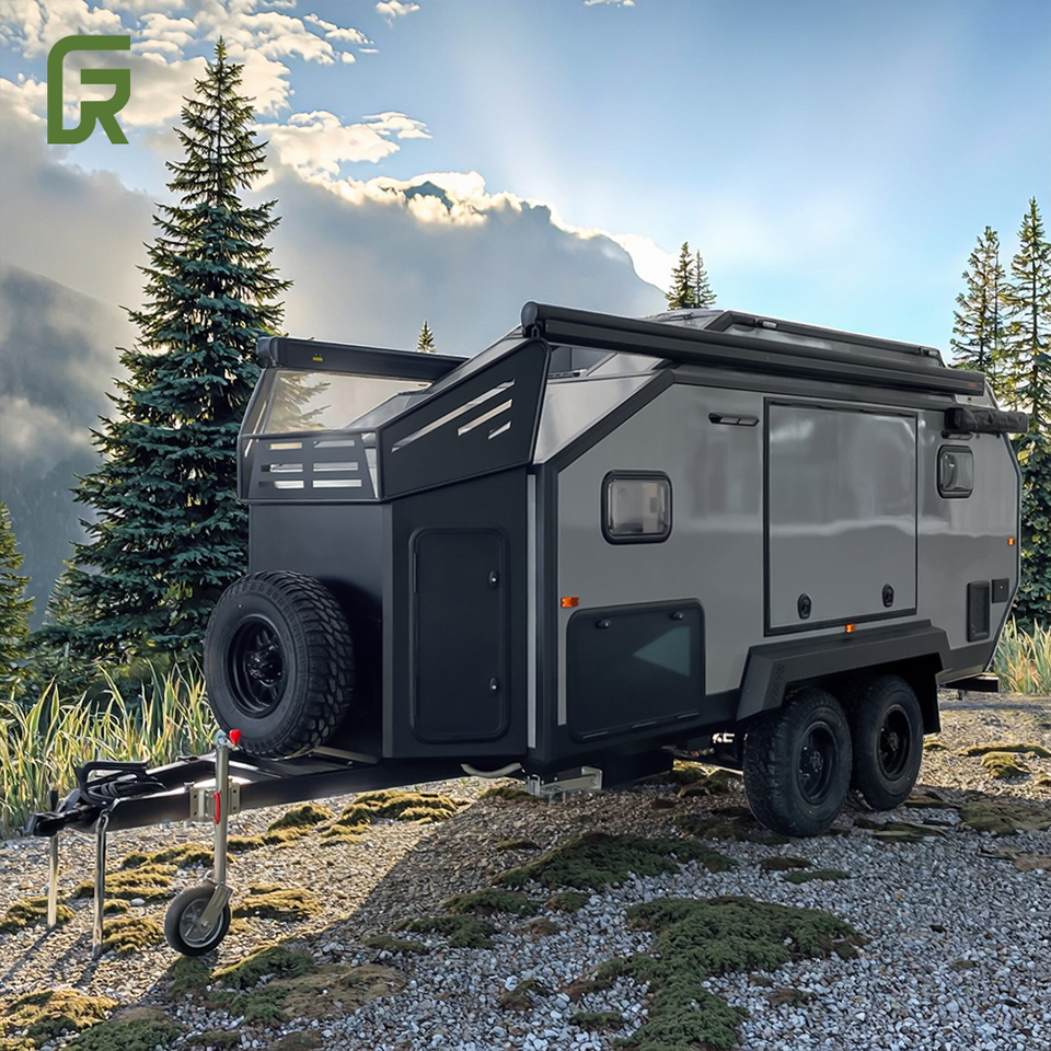 Independent Suspension Offroad Camping Trailers Mini Fiberglass Motorhomes with Movable Function and Tent Support for Campers