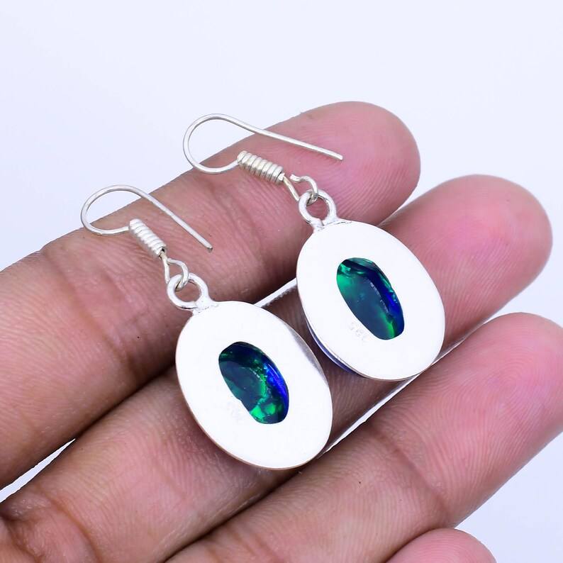 Australian Triplet Opal 925 Silver Dangle Earrings Handmade Boho Jewelry Natural Opal Earrings For Women