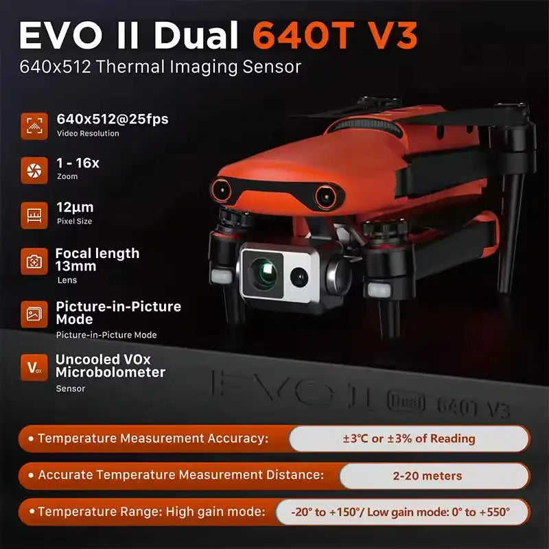Autel EVO 2 II Dual 640T V3 Commercial Thermal Drone with Carbon Fiber Quadcopter Design GPS Navigation and 4K Camera