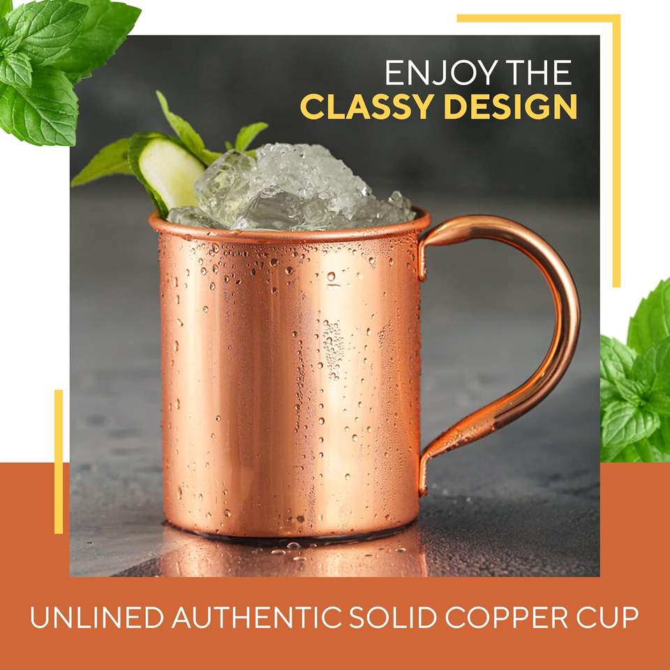 Authentic 100% Copper Mug with Hammered Texture Food Safe Ceramic Cups for Serving Moscow Mule and Chilled Drinks