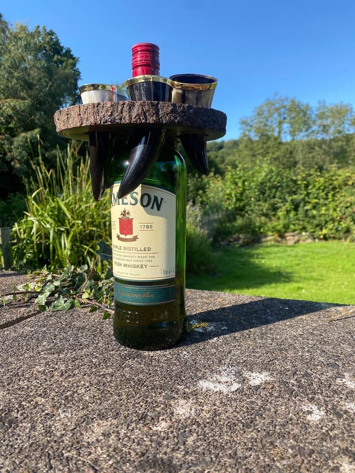 Authentic 100ml Round Shot Glass Set of 5 Rustic Wood Display Stand Polished Latest Design for Beer Wine Drinking