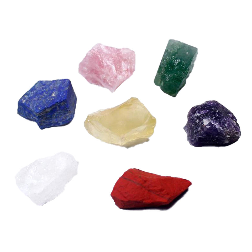 Authentic 7 Chakra Rough Raw Stone Set Natural Unpolished Crystals from India Feng Shui Energy Figurine Home Decoration Gift Kit