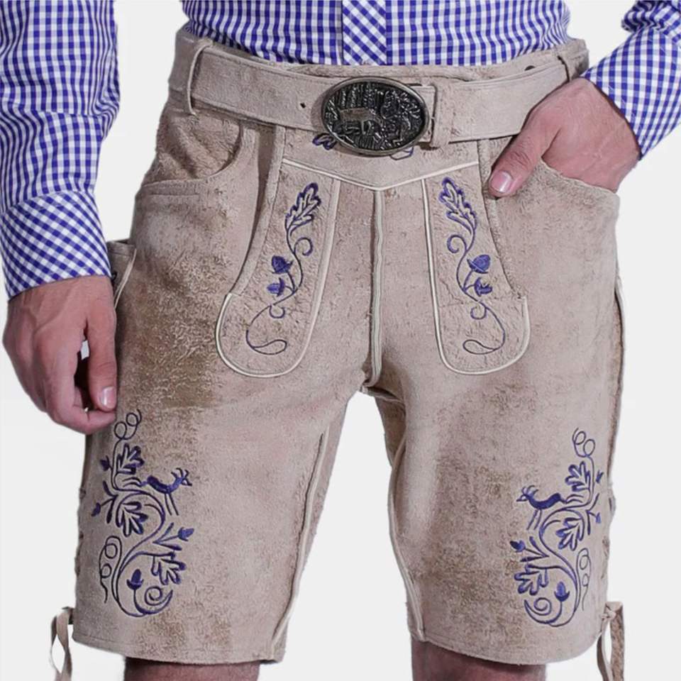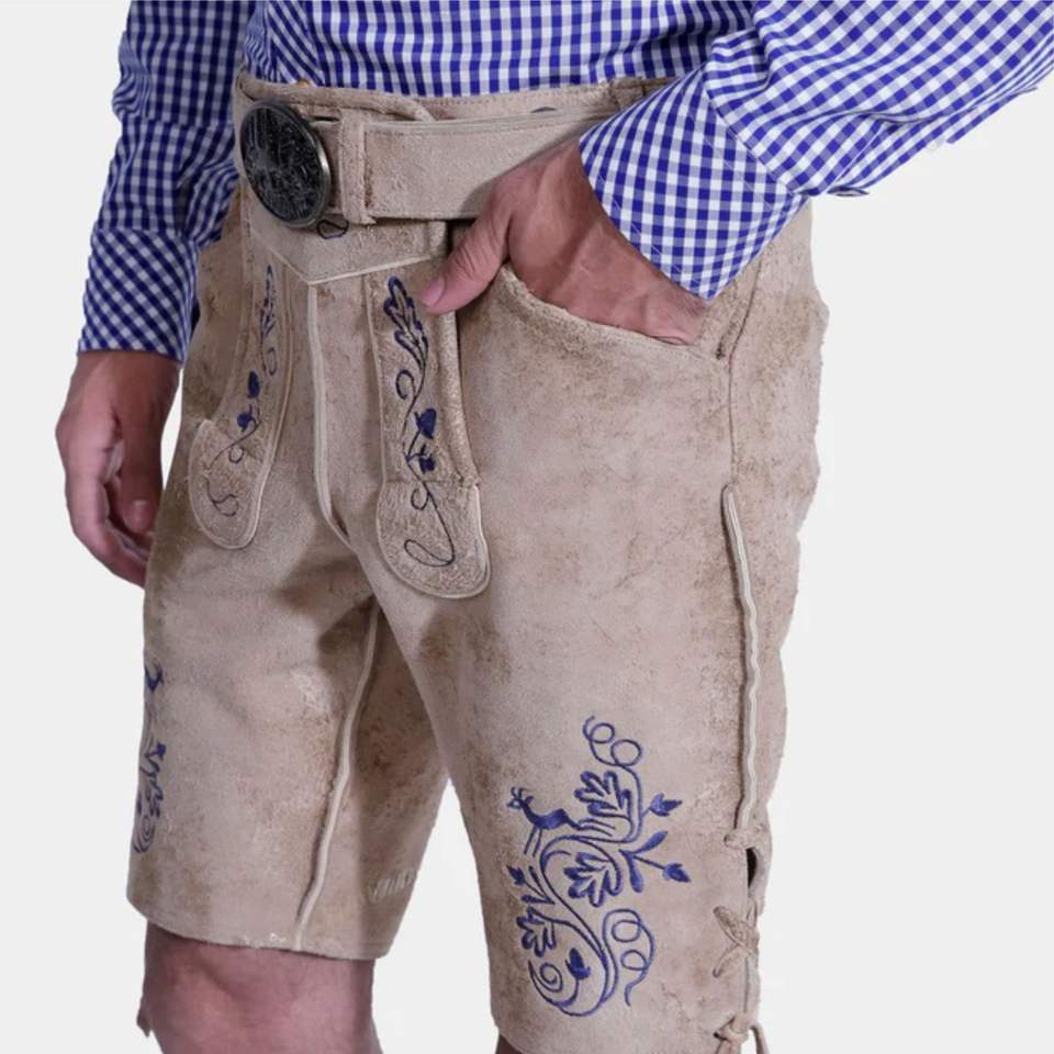 Authentic Bavarian Leather Shorts Traditional Lederhosen with Suspenders for Oktoberfest and Bavarian Celebration