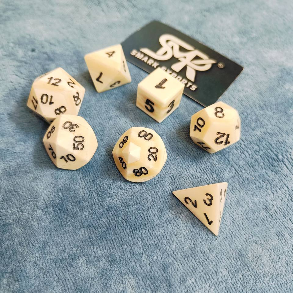 Authentic Buffalo Bone Gaming Dice Set Natural White Polished Polyhedral Dice for Fantasy Tabletop Roleplaying Games