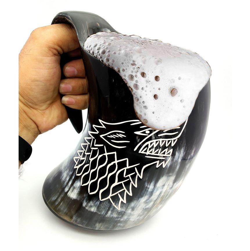 Authentic Handmade Eco-Friendly Buffalo Horn Viking Mug Carved Wine Beer Cup for Drinking Modern Religious Animal Design