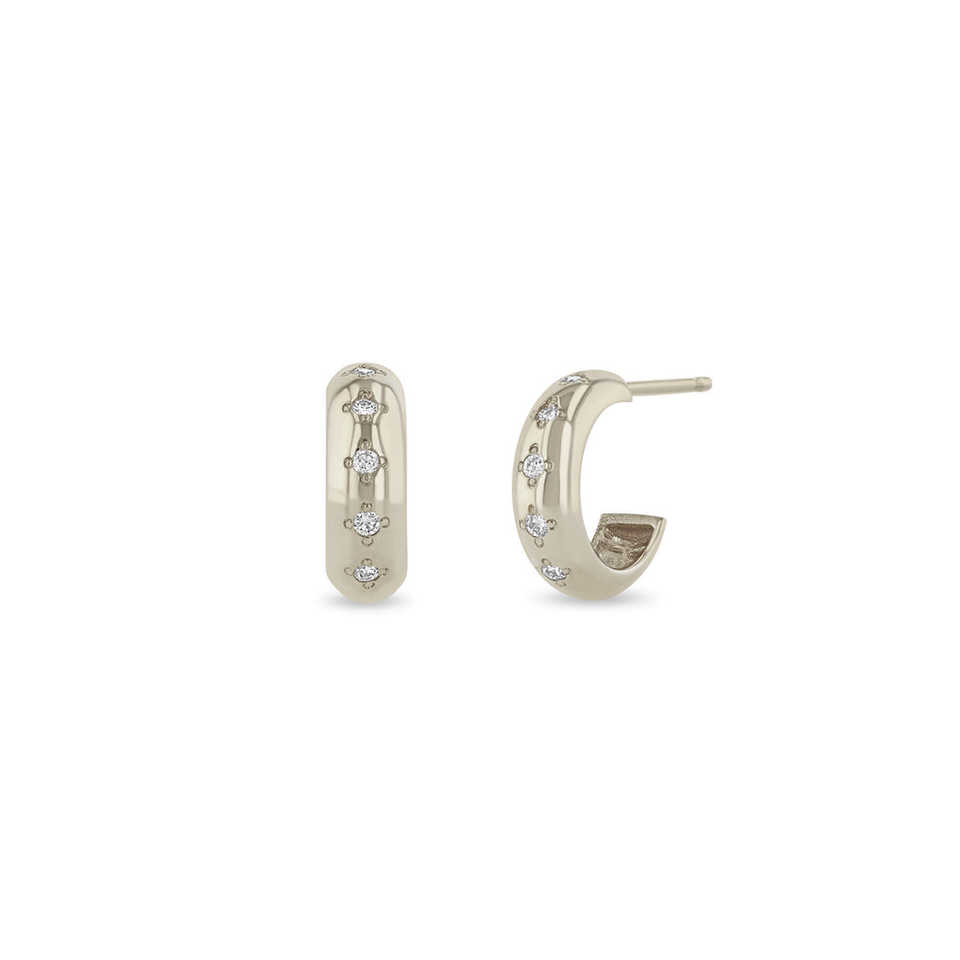 Authentic Design 5-Cut Bezel Set Lab Grown Diamond Chubby Huggie Hoop Earrings Handmade Jewelry Gold Wrap Women Featuring Pearl