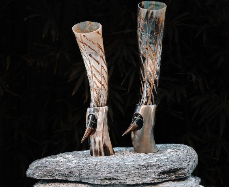 Authentic Design Animal Style Drinking Horn with Stand for Home Decoration by Tayyab Handicrafts