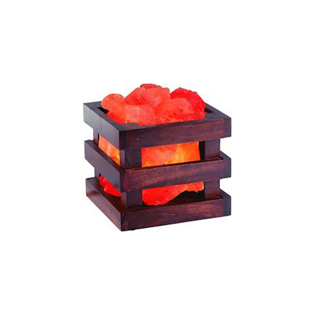 Authentic Hand-Carved Pyramid Himalayan Salt Lamp Gentle Light Home Decor with Wooden Base Carved Love Style Basket Craft Piece