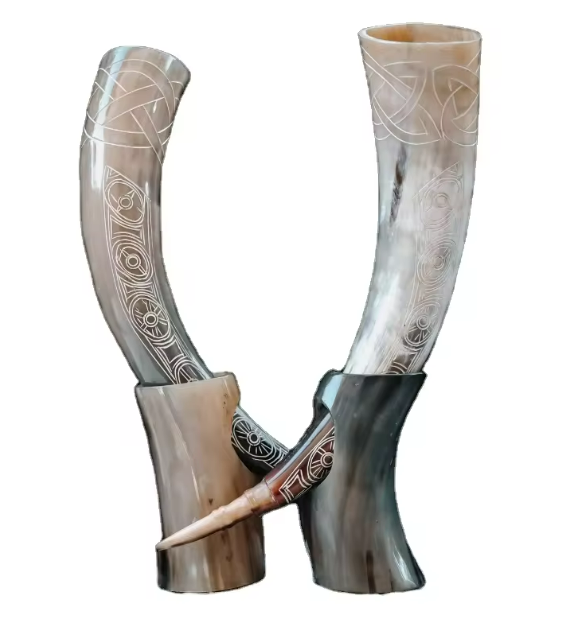 Authentic Handmade Medieval Norse Drinking Horn Viking Compass Inspired Religious Design Hand Engraved Polished Animal Carving
