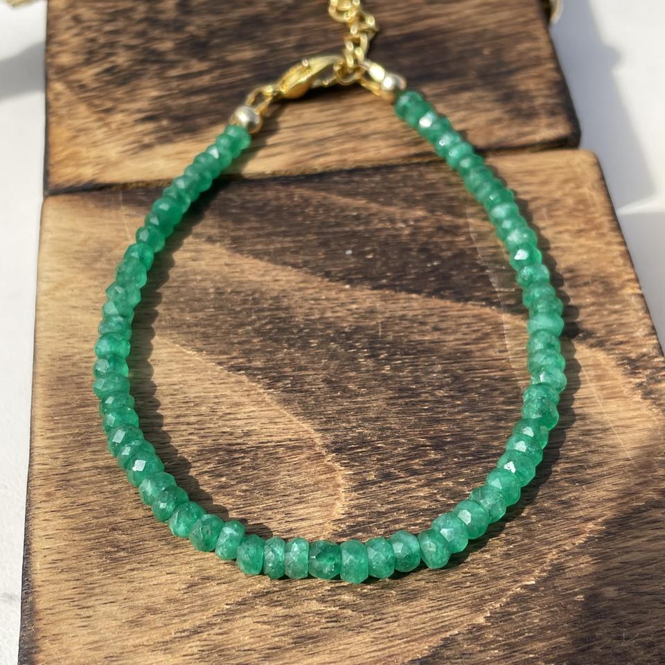 Unisex Green Emerald Beads Bracelet Authentic Beads May Birthstone for Wedding and Anniversary Parties