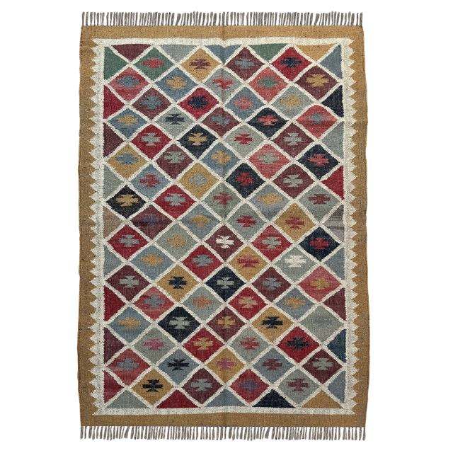 Authentic Indian 4x6 Vintage Kilim Design Dhurrie Carpet Wool and Jute for Rustic Boho Look Area Rugs & Sets