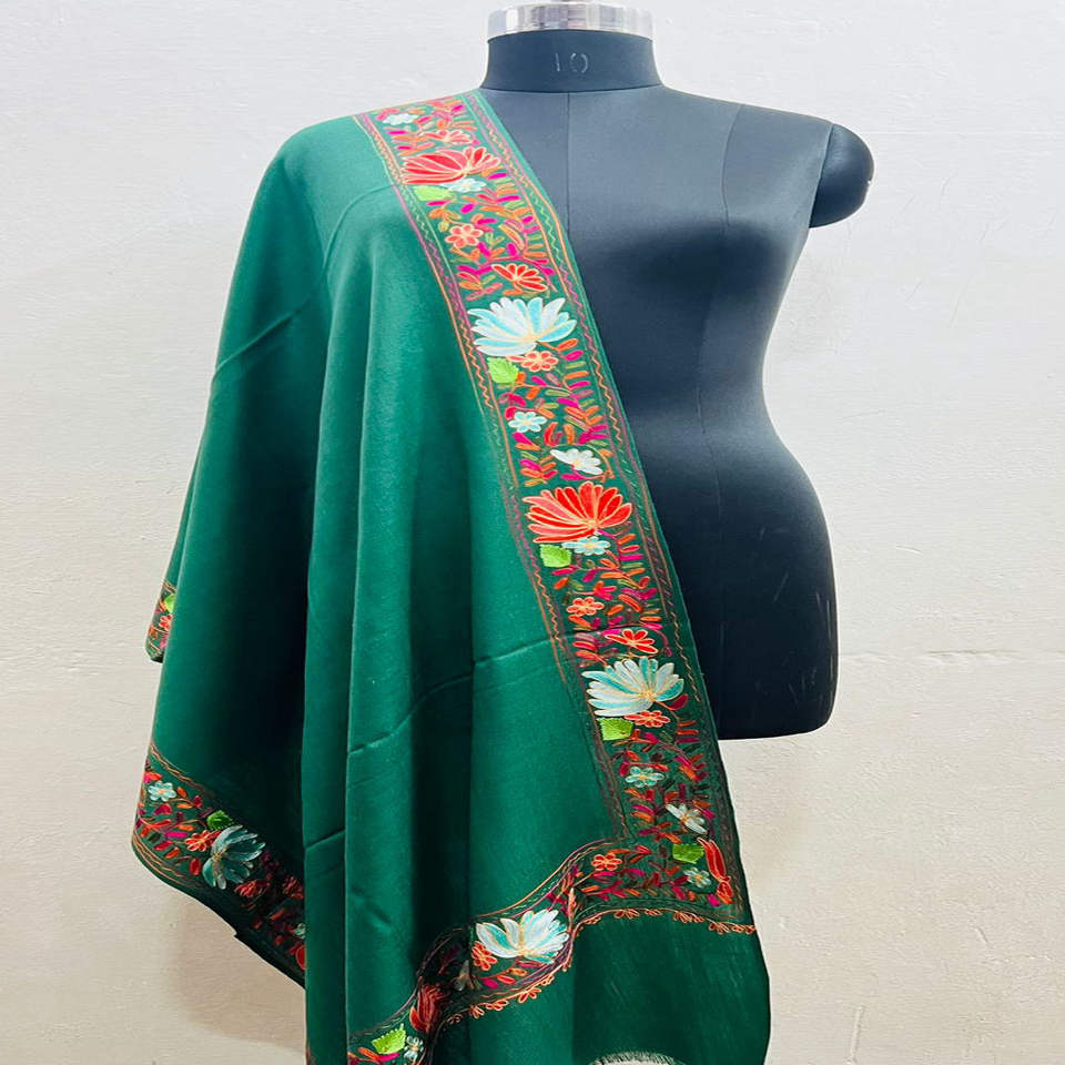 Authentic KC ENTERPRISES Kashmiri Pashmina Stole with Nalki Embroidery Border Flexible All Seasons