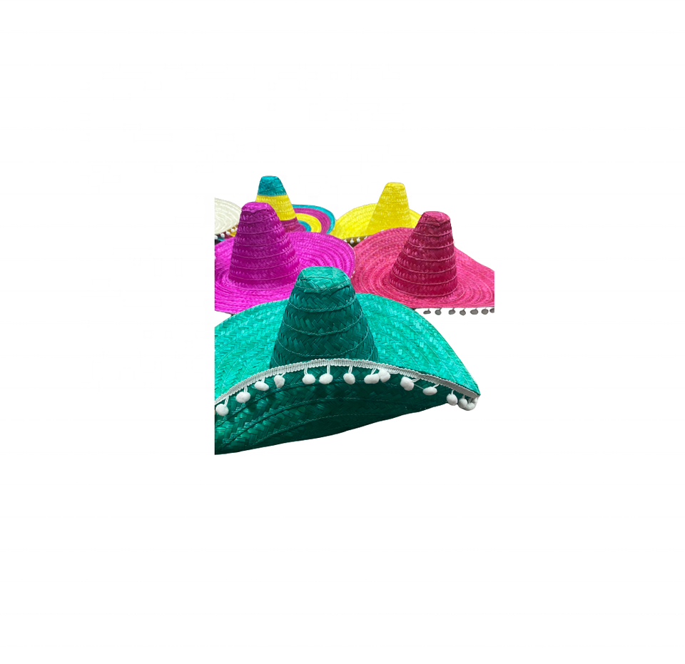 Authentic Mexican Sombrero Straw Sun Hat with Tassels Festive Pompom-Adorned for Summer Events Party Holiday Tour Travel