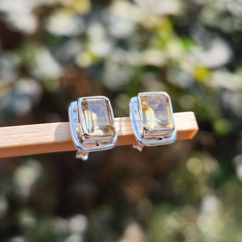 Product Name:Natural Citrine 925 Sterling Silver Stud Earrings