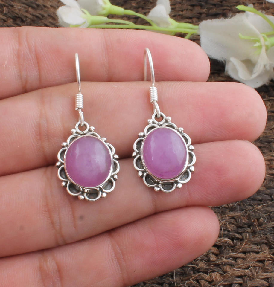 Authentic Natural Lavender Jade Earrings 925 Sterling Silver Drop Earrings Luxury Wedding Gift Jewelry